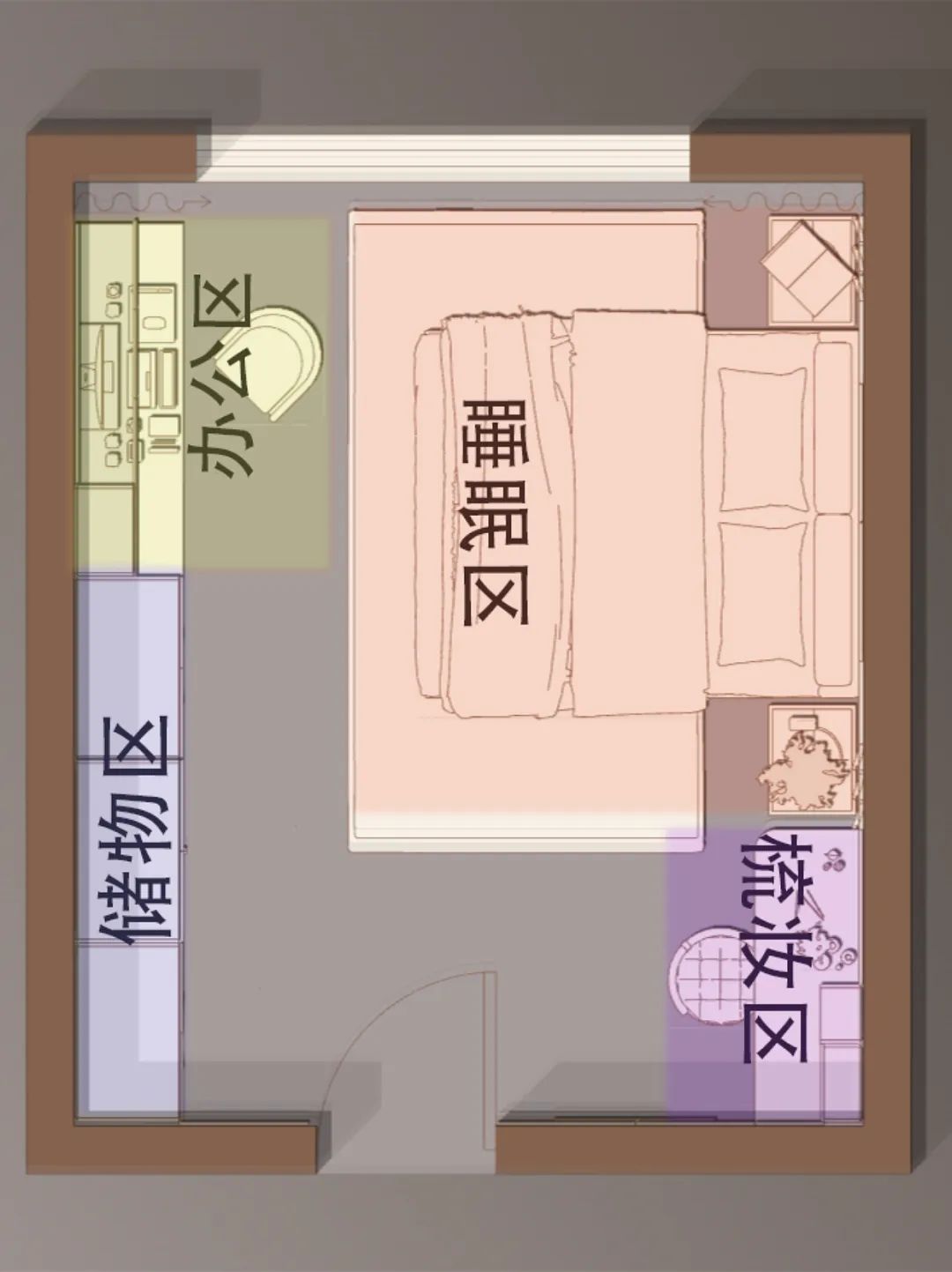 ??在布局上處于室內(nèi)“黃金地段”房間的正中央,其他功能區(qū)域圍繞睡眠區(qū)展開(kāi)。