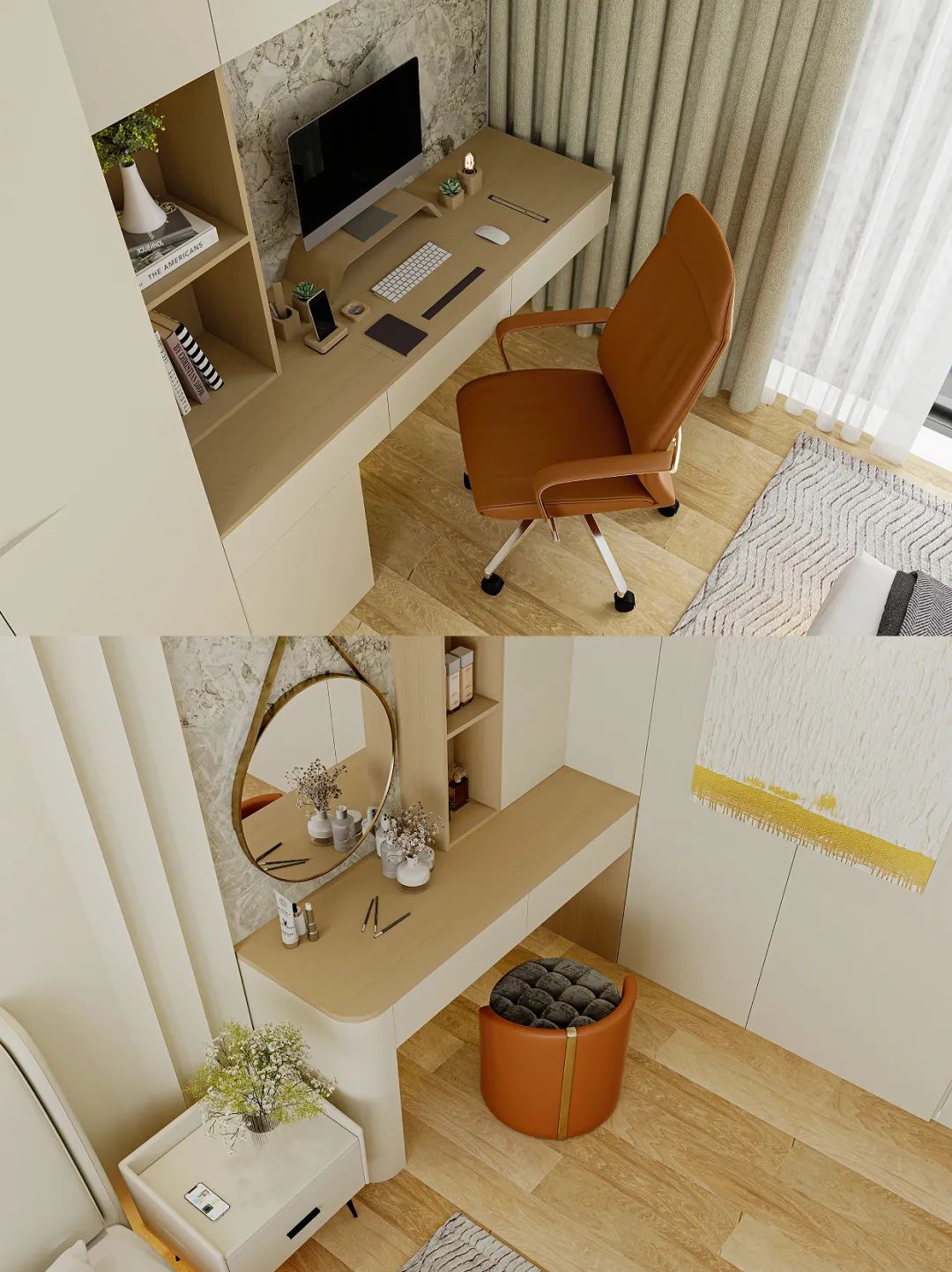 把辦公區(qū)裝進(jìn)臥室里,實(shí)現(xiàn)便捷辦公,有個(gè)舒適獨(dú)立的工作空間,效率會(huì)提升不少~