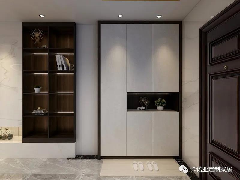 柜體采用三段式設(shè)計(jì),造型整體,收納容量大,中間開放格放置綠植、飾品,溫柔的迎接歸家的人。
