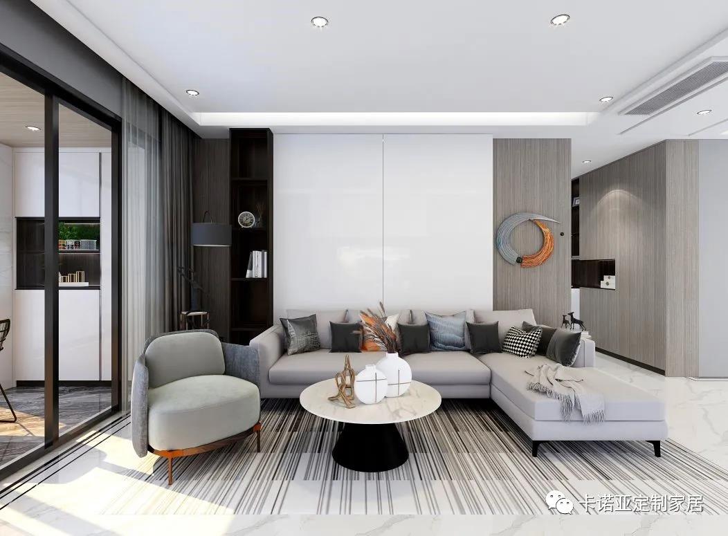 灰色的棉麻布藝沙發(fā)增加了休閑感