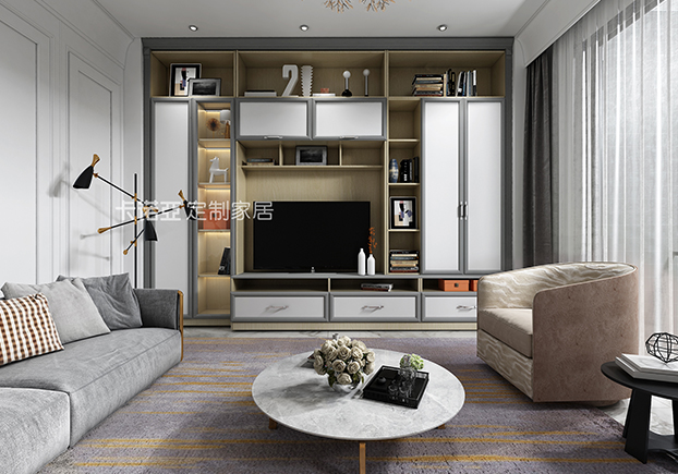 客廳的色調(diào)以白色為主,灰色、深木色作為點(diǎn)綴,各種顏色在明暗上形成對(duì)比,使空間不會(huì)過于蒼白。