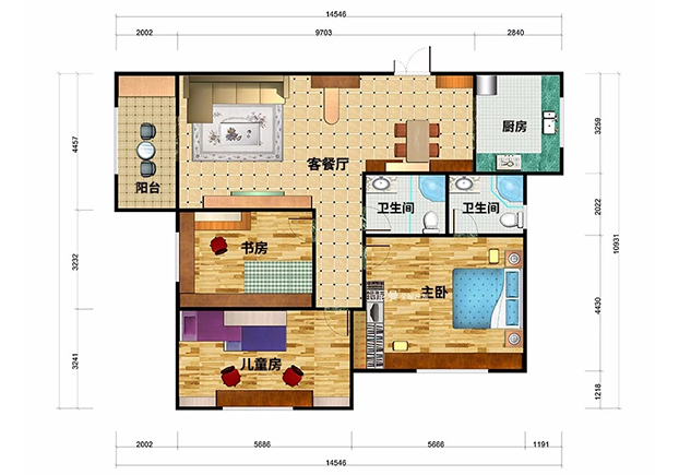 而且,書房這樣規(guī)劃還有一個(gè)好處是,以后兄弟倆長大了,希望有自己的房間時(shí),書房即使不做整改,也能作為一個(gè)房間使用了。