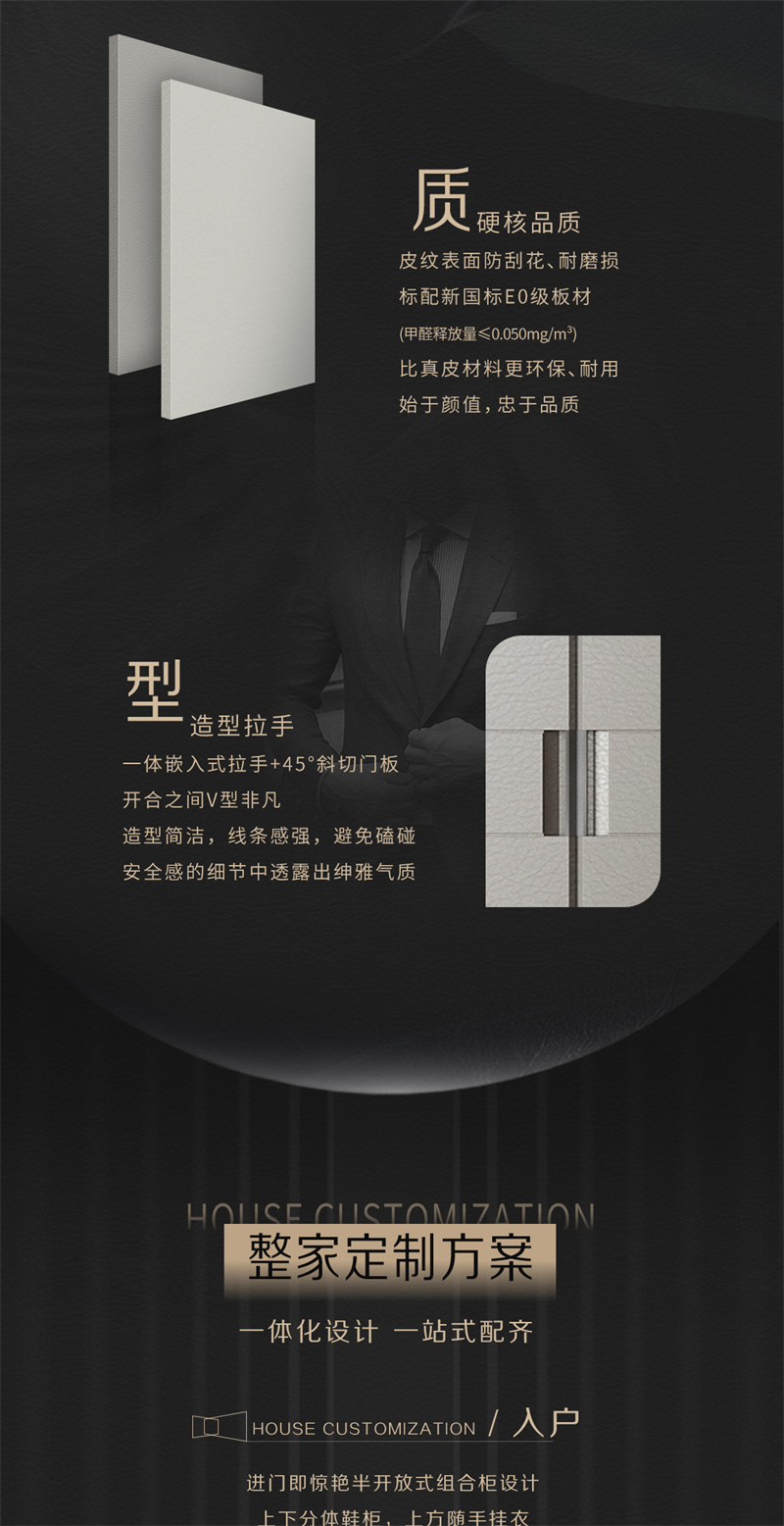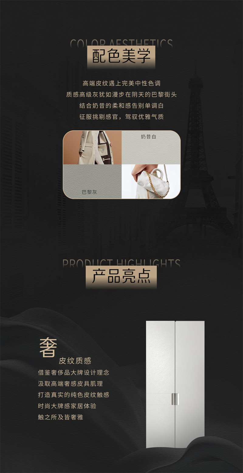2022年新品系列,杜勒 |現(xiàn)代極簡風(fēng)格高端皮質(zhì)邂逅極簡風(fēng) 簡奢有度優(yōu)雅有品靈感來源于皮具奢侈品Hermes和LV 提取“H’元素勾勒門板簡潔腰線 結(jié)合'V'元素塑造門縫立體造型 采用高端皮質(zhì)肌理打造極簡造型門板 簡奢有度優(yōu)雅有品的生活拉開帷幕