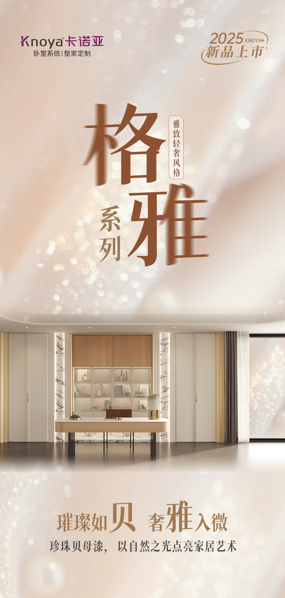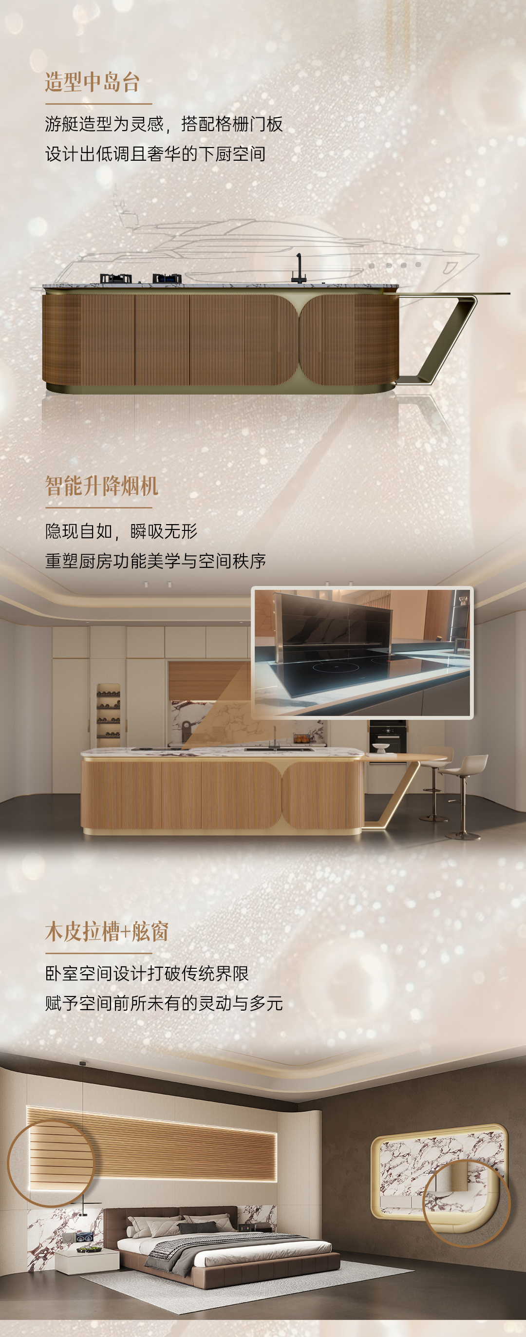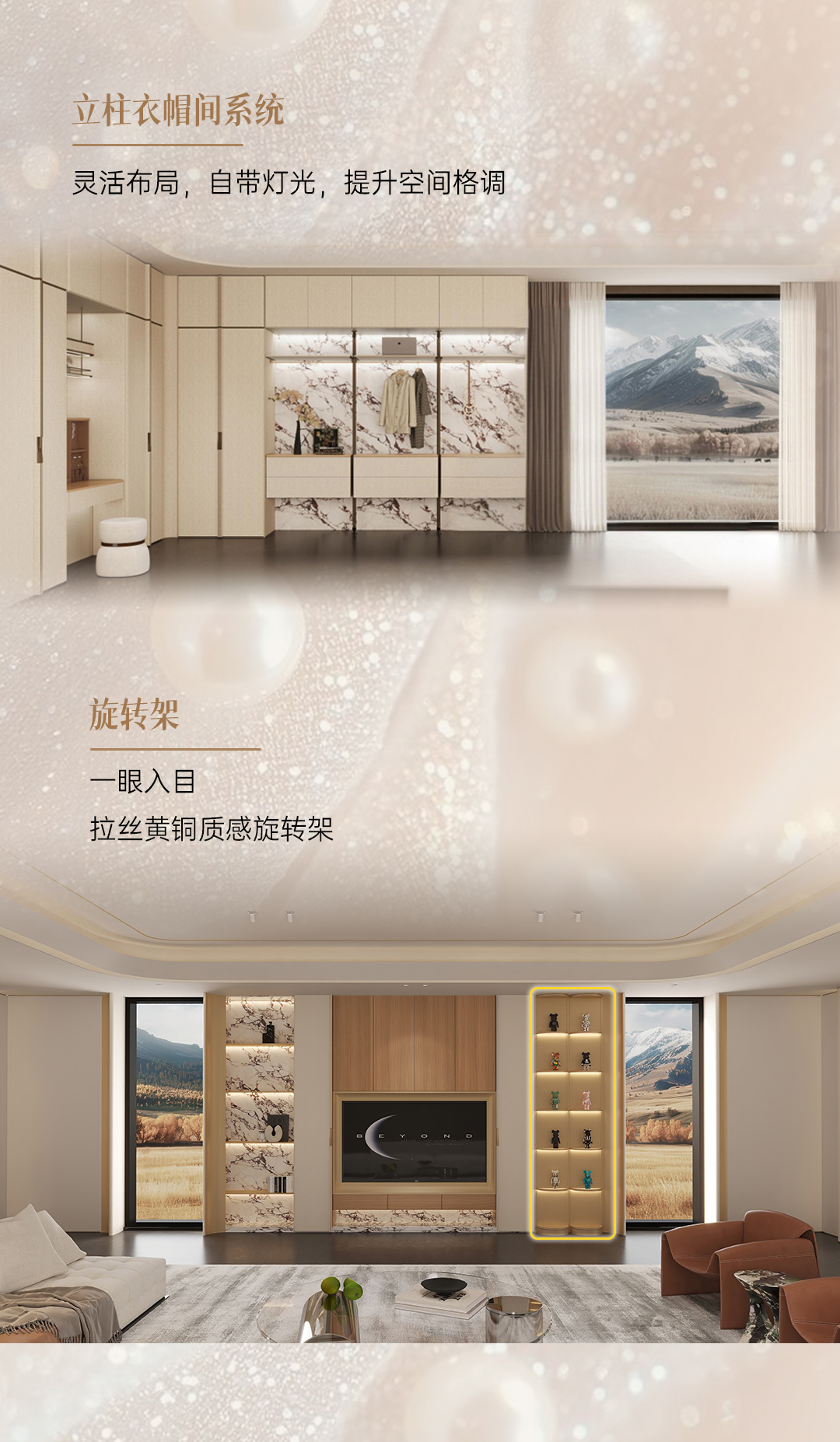 2025年新品系列,格雅系列 |雅致輕奢風(fēng)格從珠寶中獲得靈感,專注于體積、線性與移性的精妙把握,巧妙展現(xiàn)藝術(shù)與建構(gòu)間的微妙關(guān)聯(lián),以居者需求為基礎(chǔ),依據(jù)整體空間開放度的細(xì)膩層次,打破傳統(tǒng)界限,賦予空間前所未有的靈動(dòng)與多元。人群定位:30至45歲藝術(shù)家家庭,對生活品質(zhì)持有極致追求