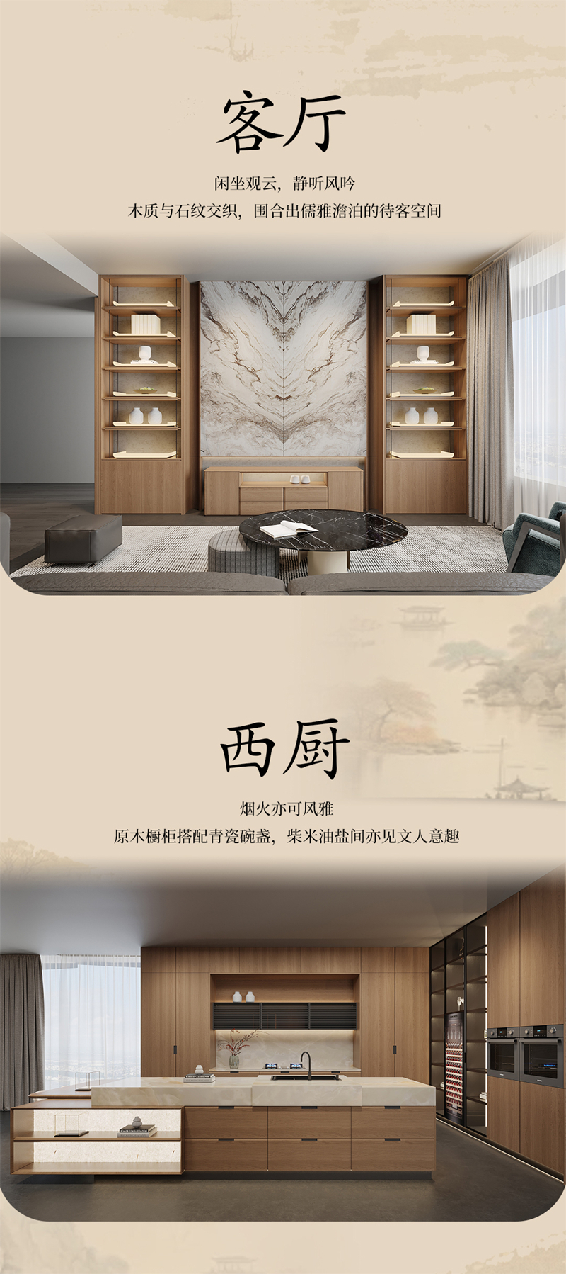 2025年新品系列,聽瀾系列 |儒雅中式風(fēng)格源起“向南窗聽雨,瀾翻墨客”之境,旨在萃取自然意趣與人文風(fēng)雅的靈韻,匠心獨(dú)運(yùn)地勾勒出靜謐且清幽的居家天地,讓每一寸角落皆氤氳著詩(shī)意的寧和,使居者于塵世紛擾中尋得心靈的安謐港灣,沉浸式體悟那份超凡脫俗的居家意境。