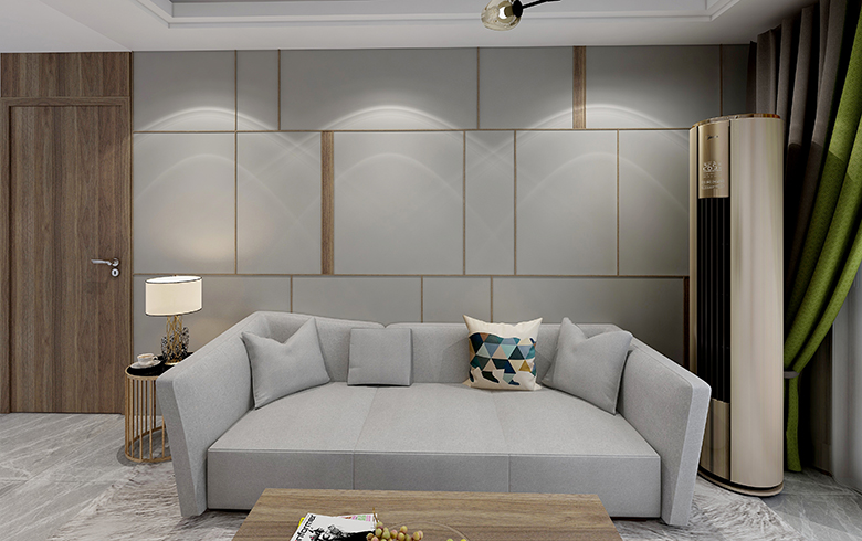 免漆門(mén)使用時(shí)尚豎紋,與整體灰色護(hù)墻板點(diǎn)綴的長(zhǎng)條形木紋相呼應(yīng),整體視覺(jué)流暢空曠,原木色、灰色的混搭讓客廳更具層次感。
