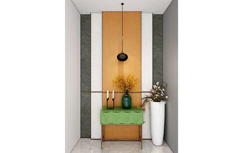 整堵護(hù)墻板以天湖藍(lán)為主色調(diào),活力橙點(diǎn)綴其間,采用創(chuàng)意的混搭撞色設(shè)計(jì),瞬間點(diǎn)亮了墻面的活力與視覺沖擊力。