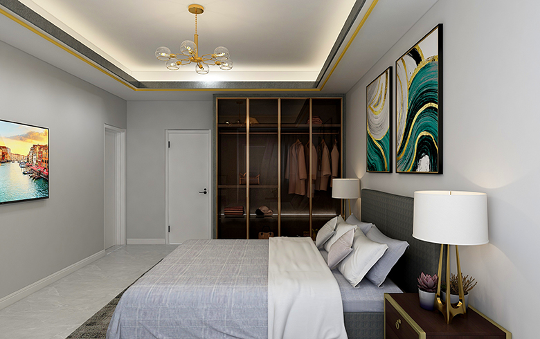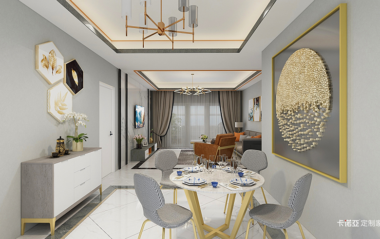 房屋空間四室兩廳兩衛(wèi),套內(nèi)面積111平米,四室分別是主臥,次臥(榻榻米),書房,衣帽間,滿足了三口之家的日常使用需求,使空間利用率達(dá)到最大化。全屋柜體采用深色板材,運(yùn)用玻璃門和淺色門板配金色拉手,通過棚線和家具顏色的搭配來達(dá)到風(fēng)格統(tǒng)一,打造輕奢風(fēng)格??筒蛷d通過金色家具和軟裝,淺色的壁紙,體現(xiàn)溫馨的氛圍。