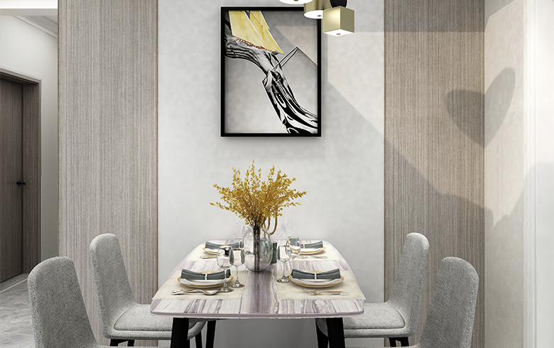從玄關(guān)到客廳,再至餐廳,廚房,臥房,書(shū)房,空間主角都是灰色,白色,溫馨的銀絲木與珍珠白的柜體突顯優(yōu)雅又帶來(lái)溫馨的家氛圍。