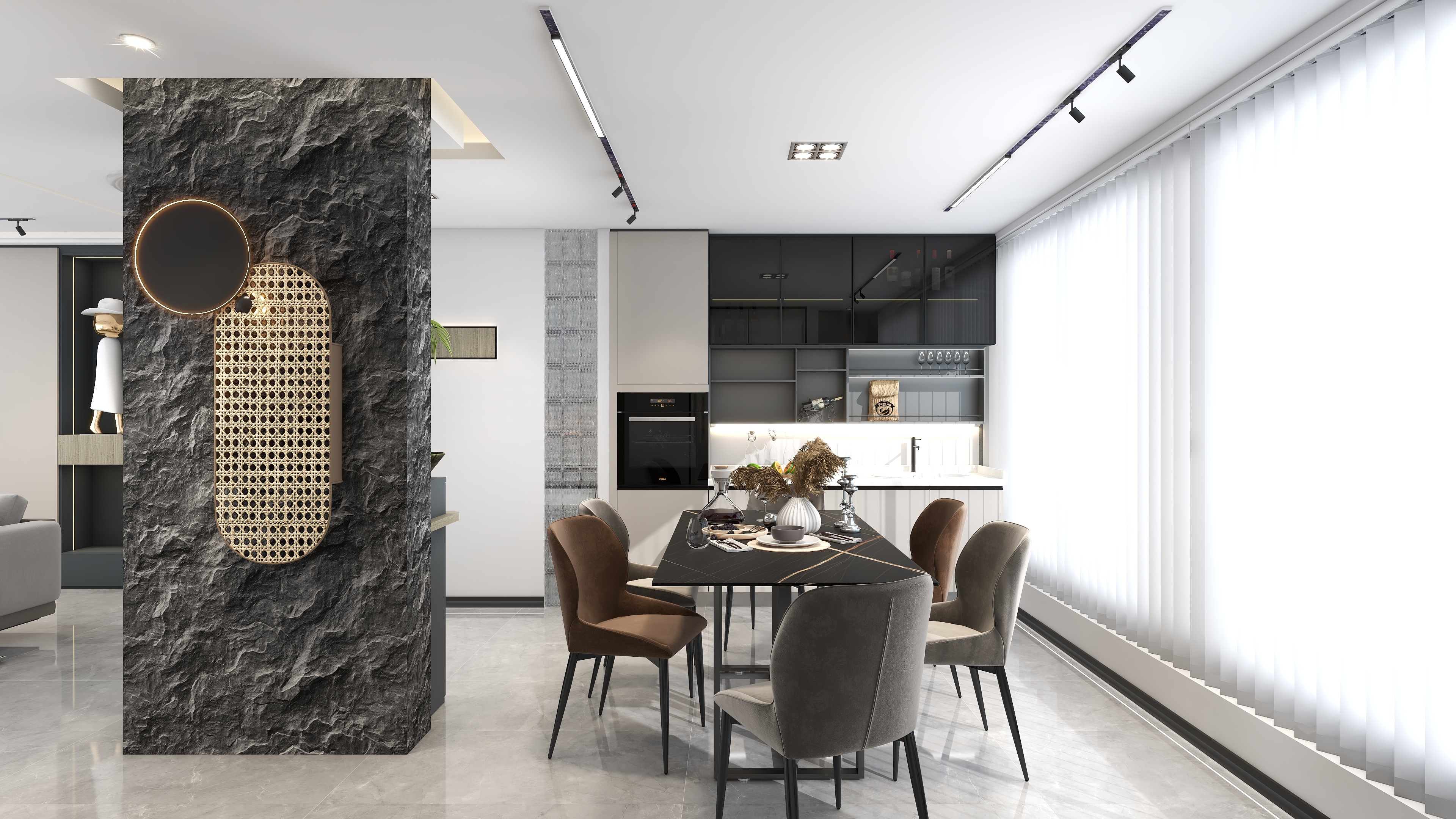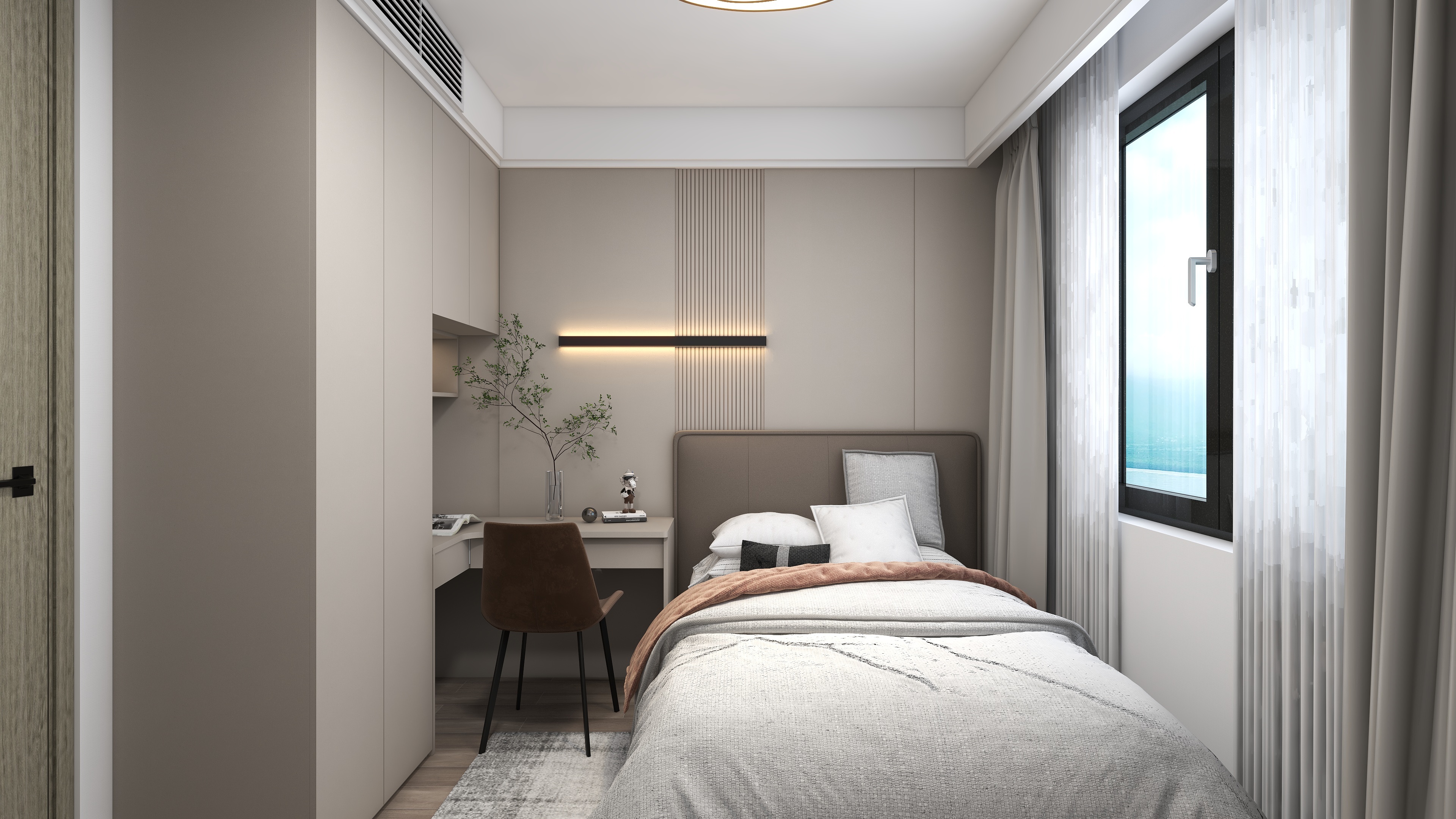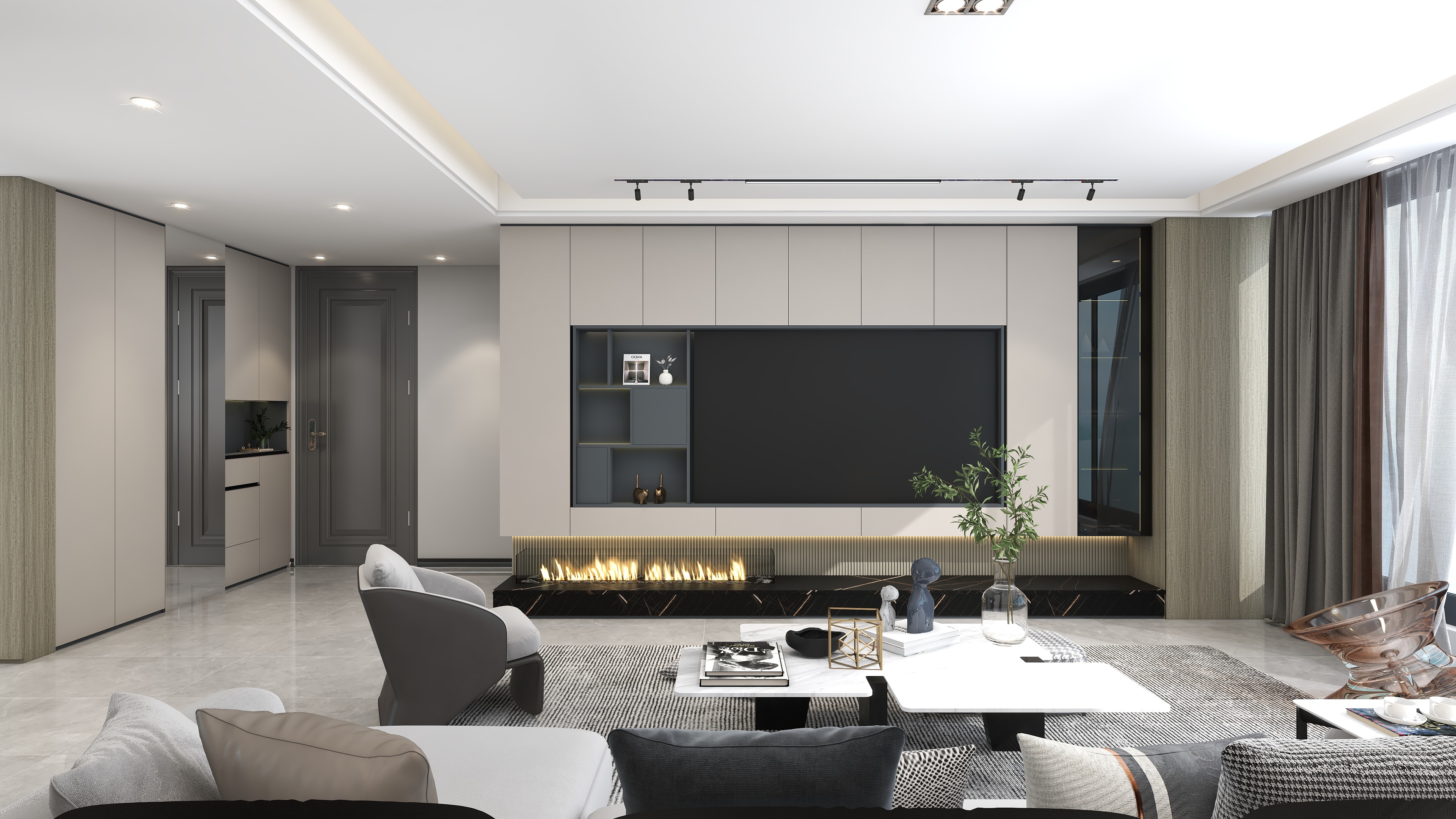 《櫟白》本案是四口之家,有三歲的孩子和老人,設計師根據(jù)每個人的需求與習慣重新規(guī)劃了空間,保留了三個房間,整體色調(diào)運用了莫蘭迪的配色靈感,卡諾亞主要打造的是柜、墻、門一體化設計,同色系的高顏值整家,整體以收納娛樂生活為一體,以靈活互動與自由開放為主旨,適當?shù)牧舭祝瑑?yōu)化細節(jié),衍生個性,締造出視野闊朗的簡約格調(diào)。