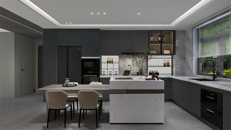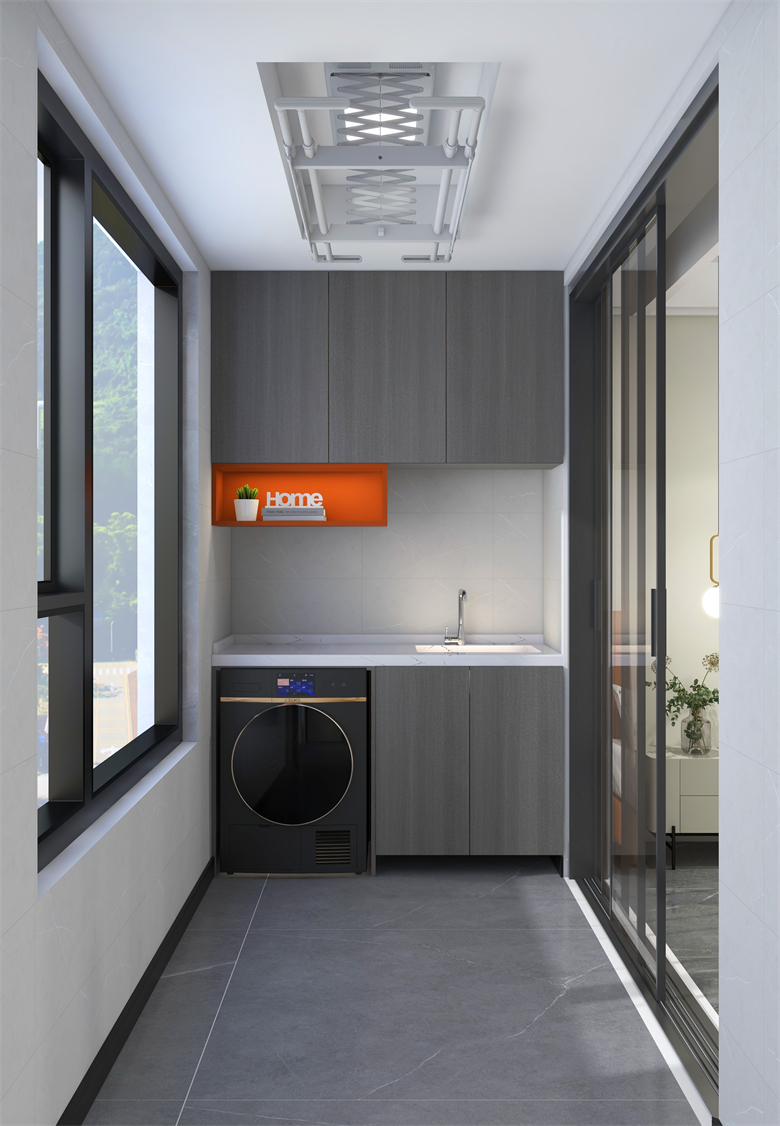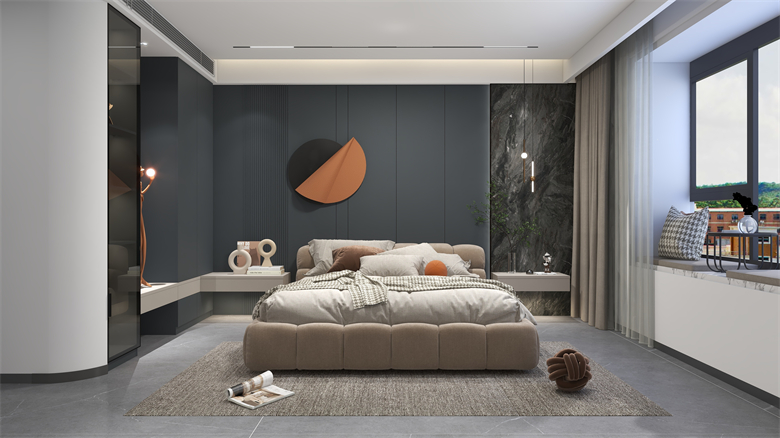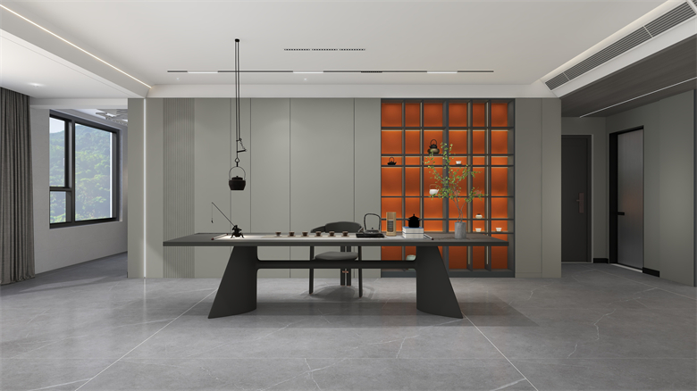 本案以現(xiàn)代極簡(jiǎn)風(fēng),采用黑白灰的色彩基調(diào),三色過(guò)渡簡(jiǎn)單自然,彼此映襯,讓人置身于一種靜謐的家居氛圍。空間中的橙色點(diǎn)綴,仿佛一術(shù)光,照亮了整個(gè)黑暗,生活需要光的指引,只要我們不斷追逐,光永遠(yuǎn)在我們前方!
