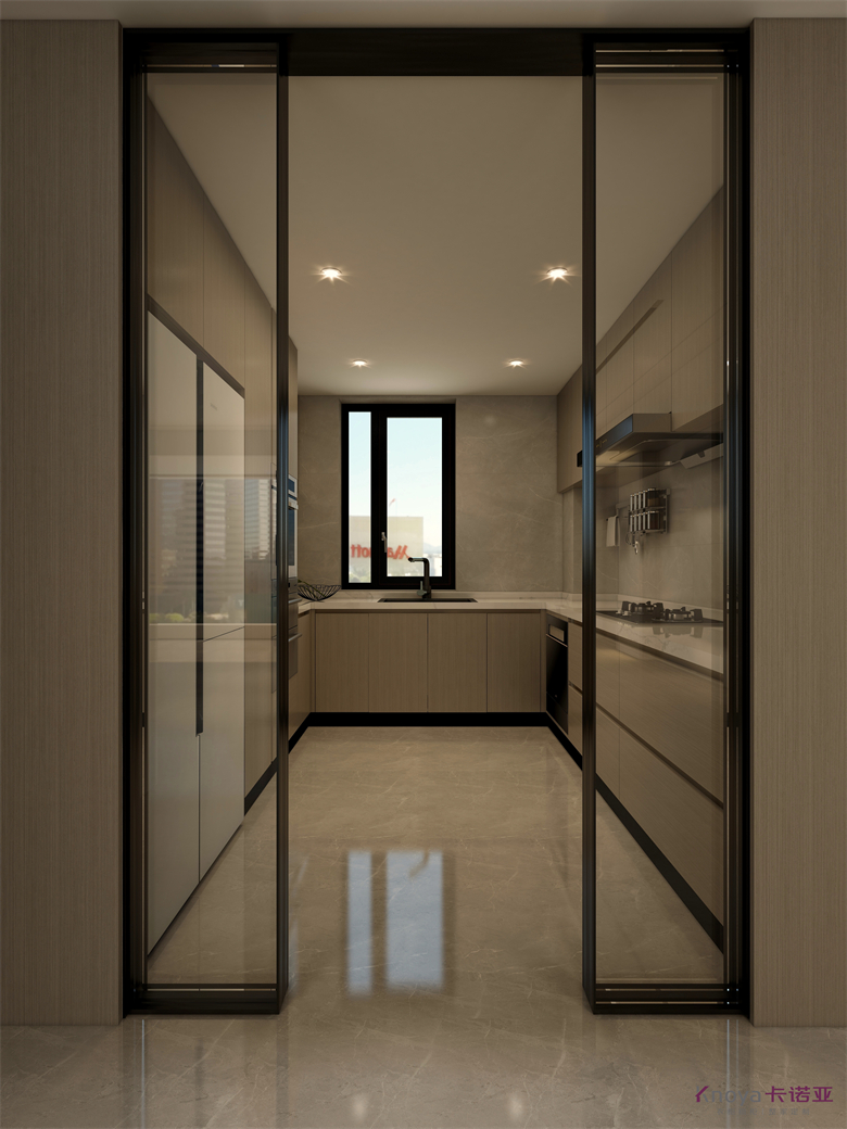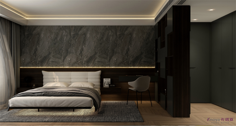 本案設計圍繞業(yè)主意式極簡風格的需求,主色調(diào)黑、白、灰、咖,多利用金屬色、木色、石材做出變化,點綴少量艷麗色。柜墻門一體化,采用穿插、進退等設計手法,配合燈光使空間簡潔又頗具設計美感。意式極簡風格刪繁就簡,遠離一切浮華和不實用,從生活本質(zhì)出發(fā),以極簡的設計演繹出最本質(zhì)的輕奢美學。設計理念:我們要知道,設計師不是給業(yè)主設計生活的習慣,而是設計習慣的生活。整家視界 全案生活|第六屆卡諾亞整家設計精英聯(lián)賽