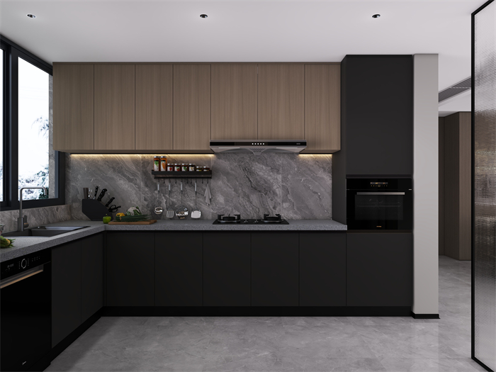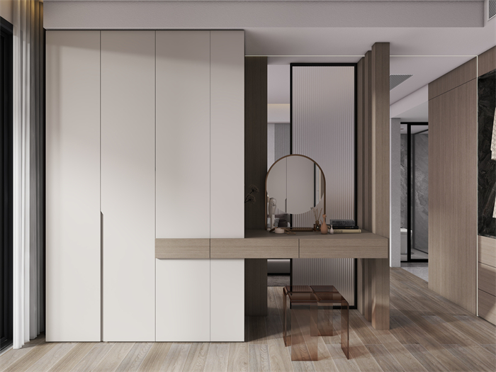 家具選擇上,以簡約現(xiàn)代風(fēng)格的家具為主,注重舒適度和功能性。軟裝細(xì)節(jié)上,采用柔和的色彩和材質(zhì)。廚房注重實(shí)用性和便利性,采用嵌入式收納設(shè)計(jì),最大化利用空間,營造一個(gè)干凈整潔的烹飪區(qū)域。臥室以舒適為設(shè)計(jì)重點(diǎn),采用柔和的色調(diào)和舒適的床品,營造令人放松的休息空間。充分利用儲(chǔ)物空間保持整潔有序。
