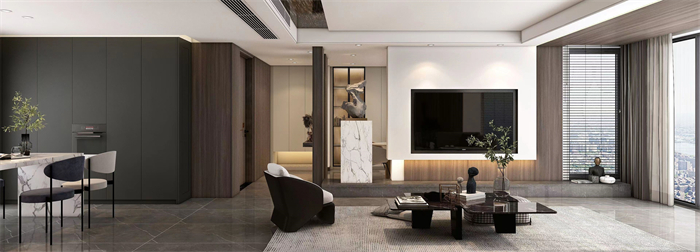 作品簡(jiǎn)介:本作原布局是標(biāo)準(zhǔn)小四房,入戶小房間改為交互式客餐廳一體,使得整個(gè)空間更加開放通透。出發(fā)點(diǎn)為表現(xiàn)出整個(gè)空間的連貫性和交互性。全案使用了色塊面積較大的“棕絲木”。木紋細(xì)膩舒暢,結(jié)合卡諾亞專屬專利扣線,無(wú)膠安裝,海棠角完美細(xì)節(jié)呈現(xiàn)。整體深色木紋系作為主線,純色塊漆面材質(zhì)作為點(diǎn)綴,小比例藝術(shù)玻璃等;各材質(zhì)協(xié)調(diào)使用。