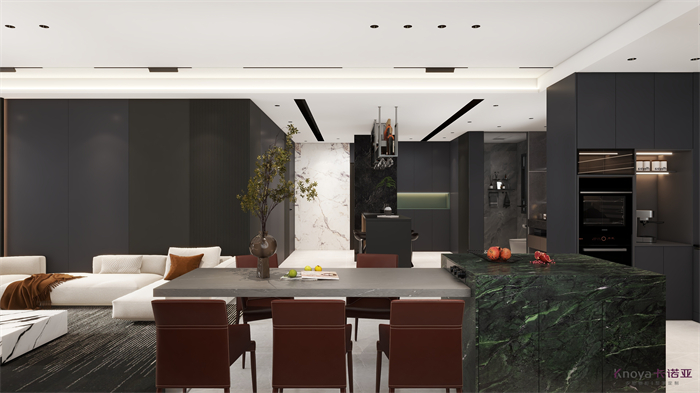 作品簡(jiǎn)介:整體以現(xiàn)代為主,入戶區(qū)域和酒水吧區(qū)域做環(huán)繞型設(shè)計(jì),整體更通透空間,客廳背景墻運(yùn)用了疊級(jí)的手法弱化承重柱,沙發(fā)背景同樣采用疊級(jí)做到呼應(yīng)的設(shè)計(jì),主臥拆除隔壁臥室做主臥步入式衣帽間,增加了主臥的靈動(dòng)以及空間,兒童房采用類(lèi)似榻榻米手法設(shè)計(jì),整體做收納儲(chǔ)物學(xué)習(xí)娛樂(lè)空間,廚房做開(kāi)放式廚房,整體色系為黑灰,天花吊頂采用無(wú)主燈加智能燈光,整體空間和氛圍舒適度拉滿。