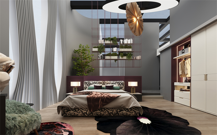 逐夢系列設(shè)計靈感上,源于當(dāng)代精英女性對精致生活的追求,代表著公司白領(lǐng)“忙在臥室”的優(yōu)雅和獨立。設(shè)計手法上,整個臥室空間按一體化多功能打造,滿足辦公、休息、放松、娛樂的需求。