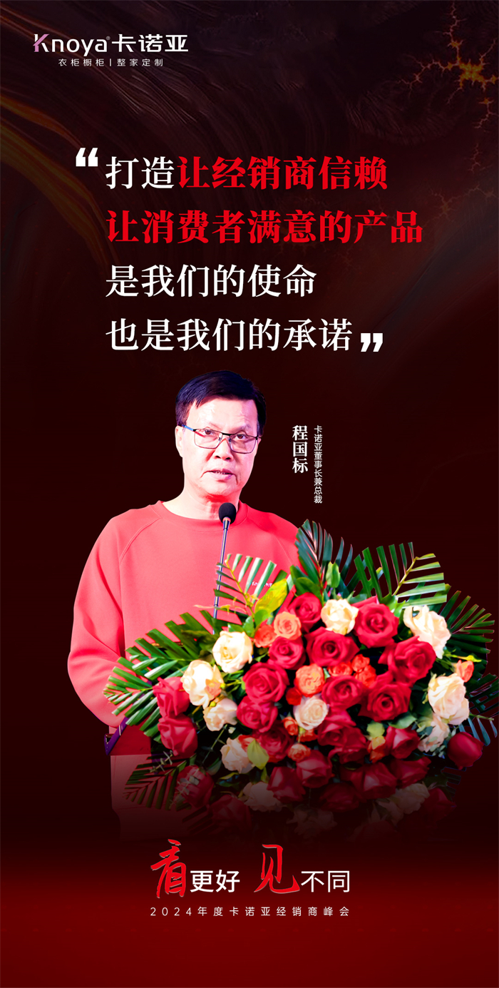 3月21日,以“看更好·見不同”為主題的2024年度卡諾亞經(jīng)銷商峰會,在廣東清遠獅子湖喜來登酒店盛大舉行,會議采用“線下+線上”的方式進行,現(xiàn)場高朋滿座,也向全國門店同步直播??ㄖZ亞董事長兼總裁程國標、副董事長吳瓊?cè)A,董事兼副總裁葉喜都、董事兼副總裁賴永精,以及董事會秘書萬成文、工程公司總經(jīng)理葉建中等公司高層領導出席了會議,群英薈萃,陣容龐大,共襄盛舉,擘畫未來。