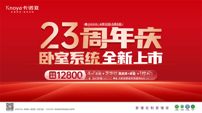 伴隨五一裝修黃金周臨近,恰逢卡諾亞23周年慶臥室系統(tǒng)盛大發(fā)布之際,為滿足消費(fèi)者的品質(zhì)消費(fèi)需求,卡諾亞五一盛惠風(fēng)暴于4月12日到5月5日強(qiáng)勢登陸全國各地專賣店,包含12800元臻選臥室套餐、11800元享在臥室套餐、10800元學(xué)在臥室套餐、28800元康醛整家套餐、8999元全屋配套家品套餐、舊櫥煥新套餐等,下定即享4大超值福利,帶來高質(zhì)價比的促銷盛宴,為不同消費(fèi)群輕松定制不一樣的專屬生活方式。