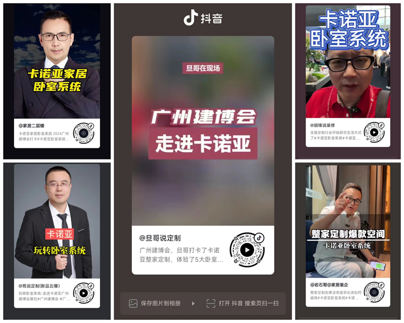 本屆建博會(huì),卡諾亞打通線上線下流量場,橫向做輻射,縱向做滲透。以“卡諾亞臥室系統(tǒng)超級(jí)IP”為傳播主線,特邀抖音達(dá)人@旦哥說定制、@娜仁格日勒、巖石哥@家居裝企、@家居二層樓、@苑說定制、@胡鋒說裝修,小紅書達(dá)人@ Snow雪芙、@愛生活的阿胖,以及權(quán)威媒體搜狐焦點(diǎn)家居、慧亞招商網(wǎng)、中華全屋定制網(wǎng)等紛紛前來卡諾亞展館,進(jìn)行專業(yè)探展與沉浸式體驗(yàn),以直播、短視頻等形式,集體為卡諾亞臥室系統(tǒng)背書。這些家居頂流KOL,展前利用短視頻打Call造勢,展中第一時(shí)間多維度現(xiàn)場體驗(yàn)卡諾亞臥室系統(tǒng)的諸多亮點(diǎn),為卡諾亞臥室系統(tǒng)在建博會(huì)上強(qiáng)勢吸睛助力,展后則深度解析卡諾亞臥室系統(tǒng)作為切入點(diǎn),帶動(dòng)整家定制的全案服務(wù)與成交推廣的財(cái)富密碼。