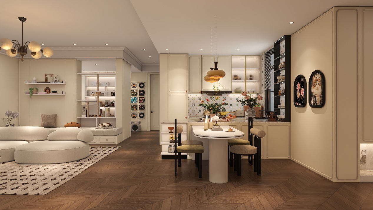 羅亞全屋定制深諳 Z 世代對 “氛圍感” 的追求,其2025年春季新品香頌系列,仿佛將香榭麗舍大街的璀璨夜景濃縮于方寸之間,供我們欣賞、享受線條、色彩沖擊之美。在其中羅亞將法式美學(xué)的精髓提煉為三大設(shè)計(jì)語言:法式線條勾勒空間的優(yōu)雅輪廓,天然布藝增添觸感的柔軟與溫度,奶油色系則奠定整體的溫潤基調(diào)。三者交織,共同營造出精致格調(diào)、復(fù)古典雅又滿含浪漫氛圍的空間意境 。