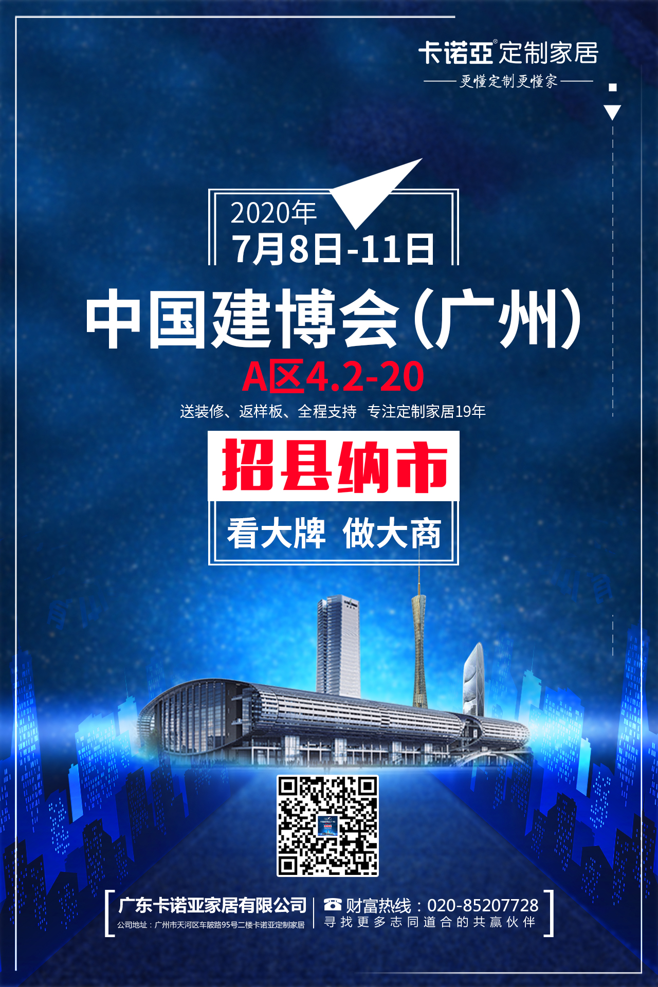 作為“中國(guó)全屋定制十大品牌”及專注定制家居19年的卡諾亞,堅(jiān)定“更懂定制更懂家”的品牌定位,做好品質(zhì)家居,奮勇前行,不忘初心,從企業(yè)匠心到行業(yè)良心,始終走在行業(yè)最前沿。這個(gè)7月,2020中國(guó)建博會(huì)(廣州)即將盛大啟航,卡諾亞為您解密創(chuàng)富秘籍。