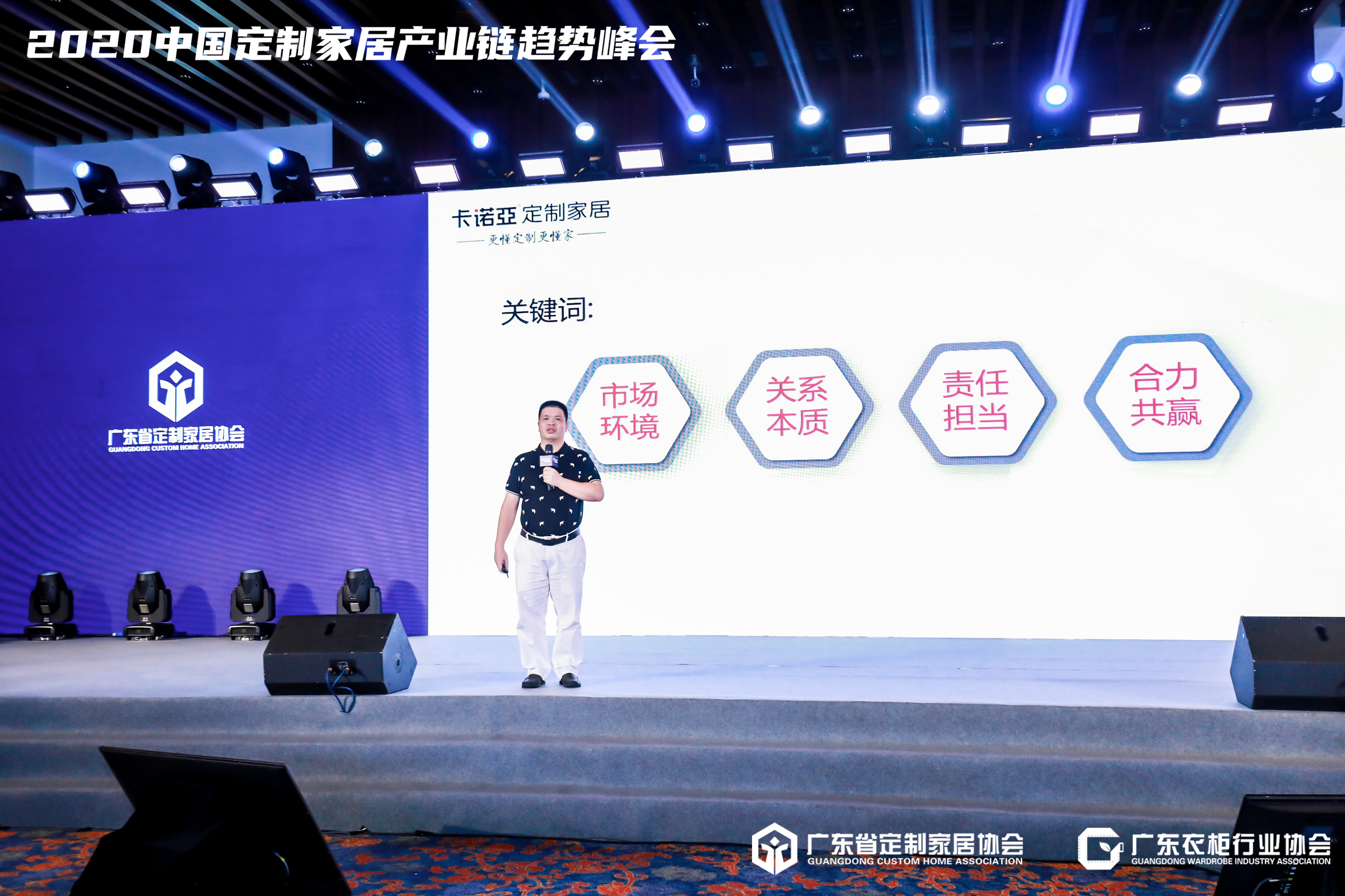 11月8日,由廣東省定制家居協(xié)會、廣東衣柜行業(yè)協(xié)會舉辦的“創(chuàng)新趨勢·創(chuàng)變不止”2020定制家居產(chǎn)業(yè)鏈趨勢峰會,在廣州隆重召開??ㄖZ亞董事長兼總經(jīng)理程國標作為中國定制家居產(chǎn)業(yè)鏈戰(zhàn)略委員會聯(lián)合發(fā)起人及首批智庫專家,應邀出席本次活動,卡諾亞副總裁兼營銷總經(jīng)理賴永精,發(fā)表了《同心協(xié)力,服務需求》的主題性演講,分享定制家居供應鏈最新趨勢,全面助力產(chǎn)業(yè)鏈上下游交流融合,提高行業(yè)的產(chǎn)業(yè)發(fā)展水平。