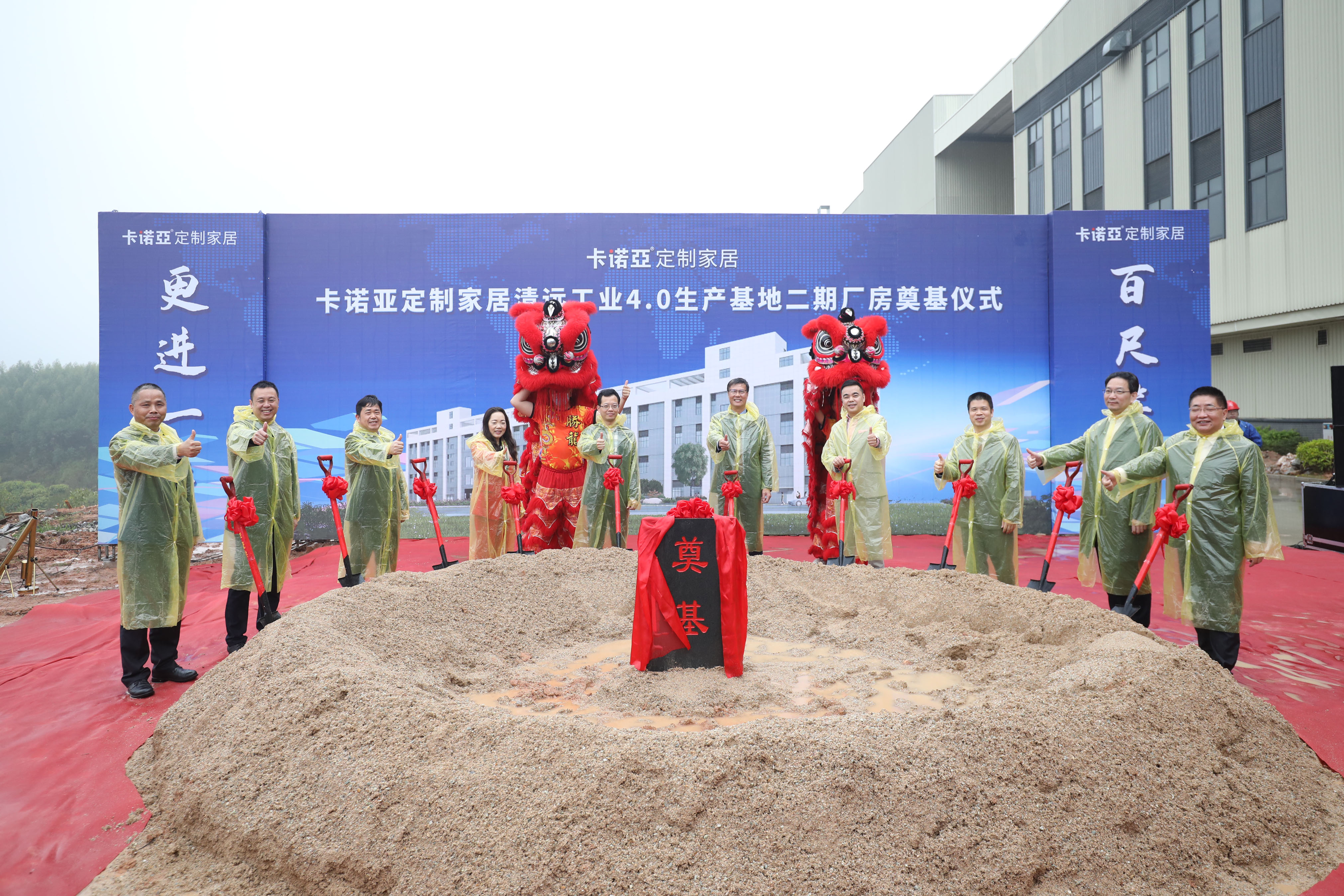 3月6日上午,以“百尺竿頭,更進(jìn)一步”為主題的卡諾亞定制家居清遠(yuǎn)工業(yè)4.0生產(chǎn)基地二期廠房奠基儀式,在清遠(yuǎn)市清城區(qū)源潭鎮(zhèn)峽山工業(yè)園隆重舉行。卡諾亞定制家居董事長(zhǎng)兼總裁程國(guó)標(biāo)先生、執(zhí)行董事吳紹華女士、副總裁兼生產(chǎn)中心總經(jīng)理葉喜都先生、副總裁兼營(yíng)銷(xiāo)中心總經(jīng)理賴永精先生、工程公司總經(jīng)理葉建中先生、董事會(huì)秘書(shū)萬(wàn)成文先生等公司“董高監(jiān)”人員,以及當(dāng)?shù)卣I(lǐng)導(dǎo)、行業(yè)協(xié)會(huì)領(lǐng)導(dǎo)、客戶代表、供應(yīng)商代表、中介機(jī)構(gòu)代表、媒體朋友等嘉賓參加了儀式。