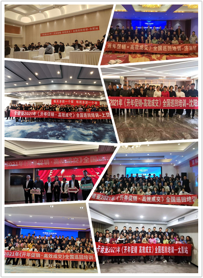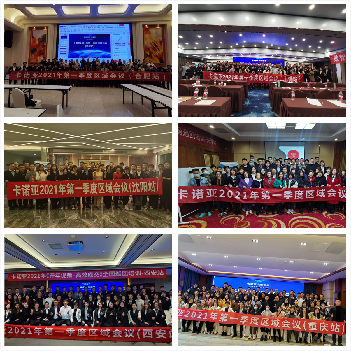 據(jù)悉,卡諾亞定制家居2021年第一季度區(qū)域會(huì)議暨開年促銷高效成交全國巡回培訓(xùn),分別在沈陽、西安、天津、太原、重慶、廣州、長沙、武漢、鄭州、濟(jì)南、上饒、合肥等近20個(gè)城市圓滿舉行。