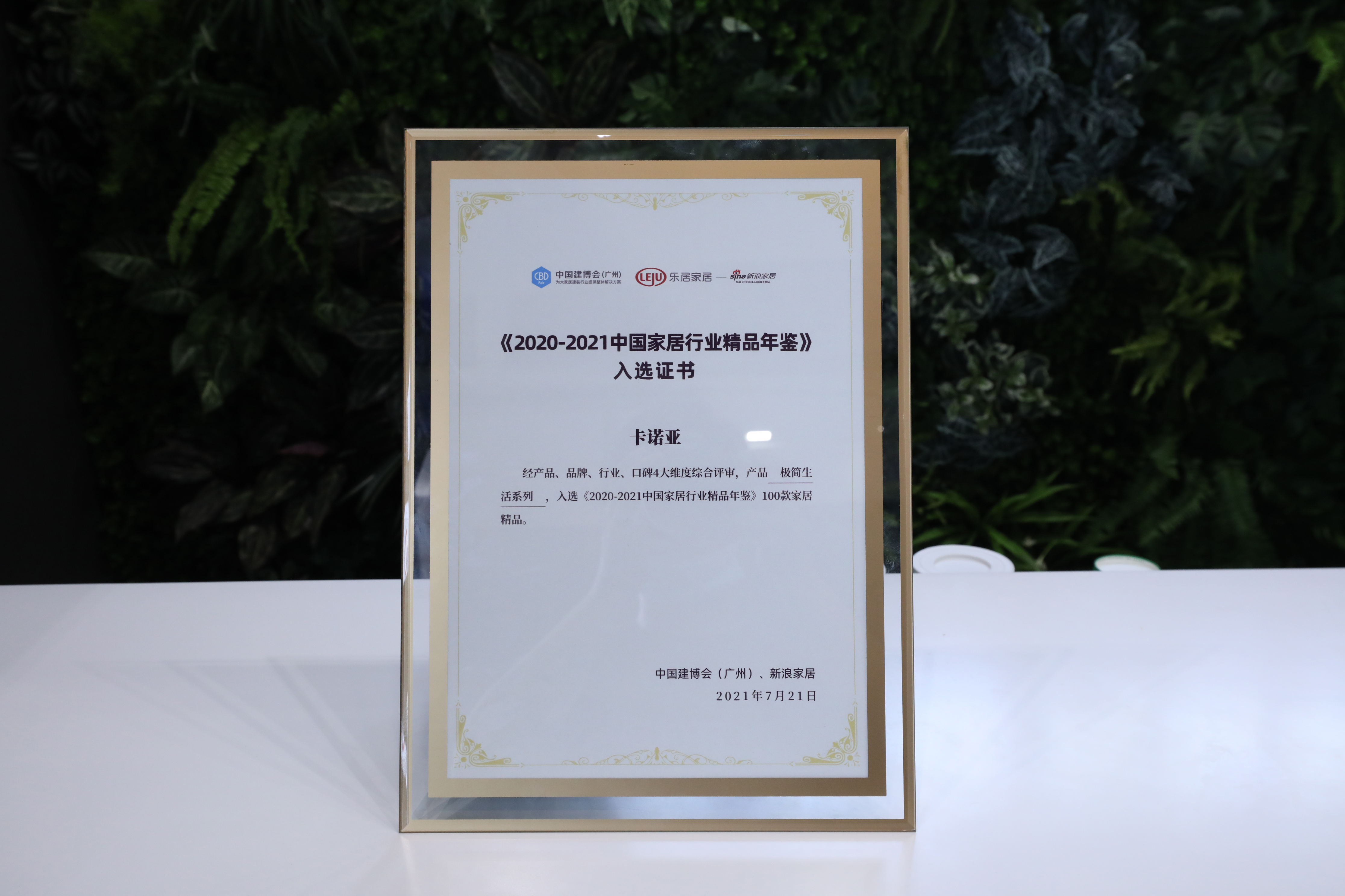 7月21日,由中國建博會(huì)(廣州)×新浪家居主辦的“了不起的家居質(zhì)造”《2020-2021中國家居行業(yè)精品年鑒》發(fā)布會(huì)在廣州舉行,卡諾亞定制家居現(xiàn)代簡約風(fēng)格極簡生活系列,經(jīng)產(chǎn)品、品牌、行業(yè)、口碑4大維度綜合評審,最終入選《2020-2021中國家居行業(yè)精品年鑒》。