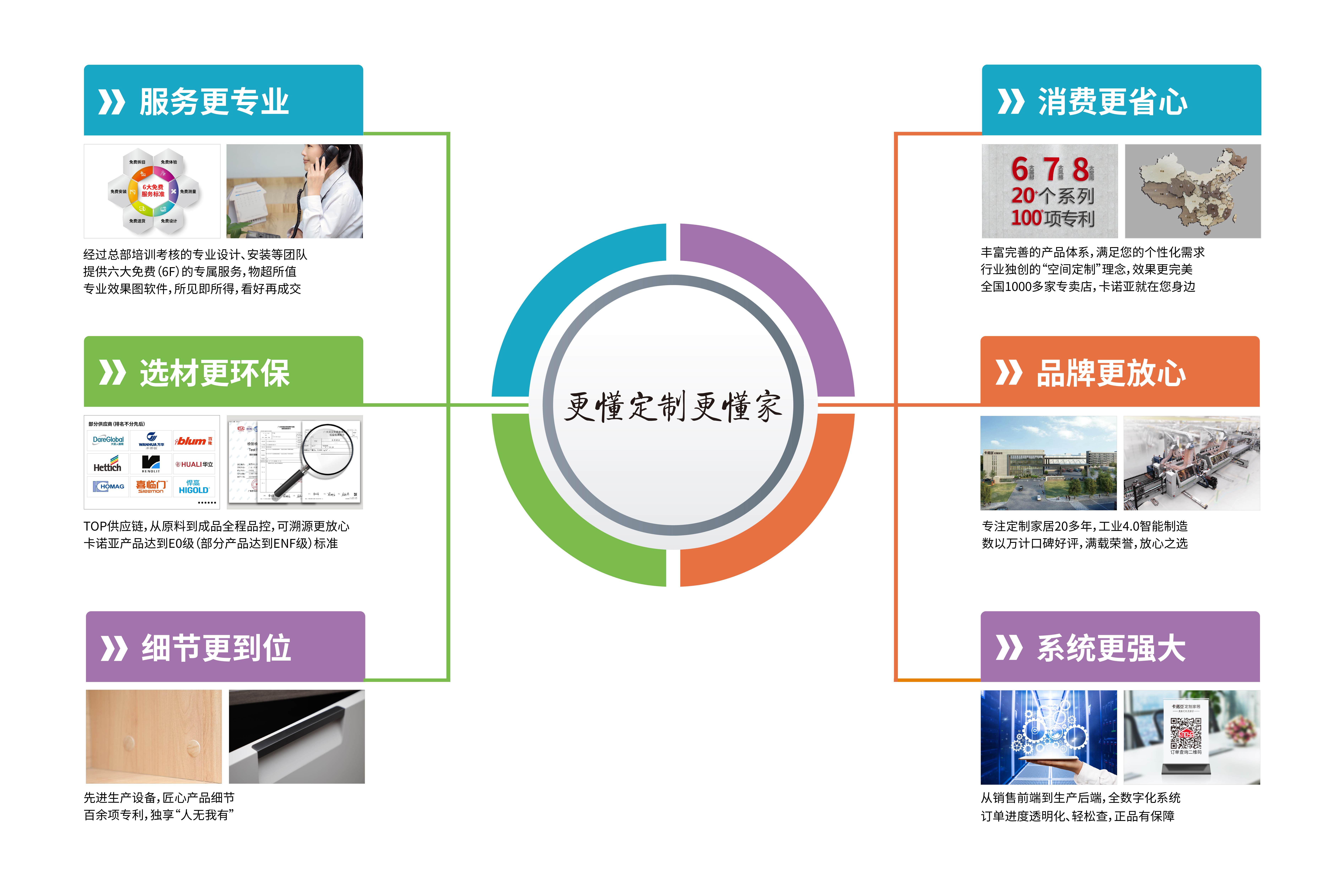 倡導“更懂定制更懂家”的卡諾亞定制家居,專業(yè)性體現(xiàn)在多方面,其中選材做到更環(huán)保??ㄖZ亞產(chǎn)品達到新國標E0級環(huán)保標準,部分產(chǎn)品則達到行業(yè)最嚴苛的ENF級,這些高標準的背后,離不開公司嚴選全球TOP供應鏈,做到從原料源頭到成品加工的全程品控,可溯源更放心??ㄖZ亞定制家居用實際行動履行社會責任,在綠色環(huán)保家居領域不斷探索。