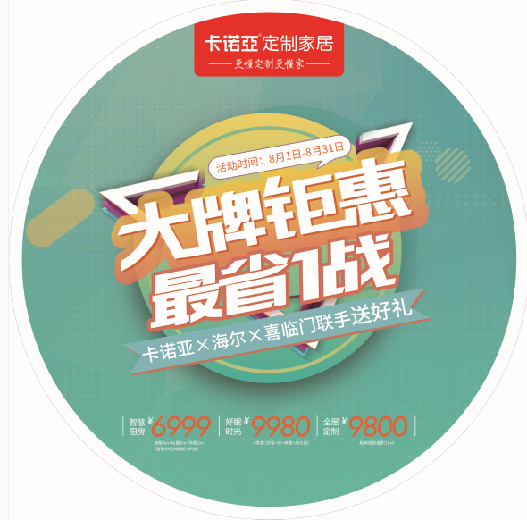 據(jù)了解,九月尚未到來(lái),卡諾亞便搶先進(jìn)入作戰(zhàn)狀態(tài),策劃了針對(duì)剛需房裝修的“大牌鉅惠,最省1戰(zhàn)——卡諾亞×海爾×喜臨門(mén)聯(lián)手送好禮”全國(guó)優(yōu)惠活動(dòng)。8月1日-31日期間,卡諾亞牽頭各大戰(zhàn)略合作品牌,以定制家居帶動(dòng)家裝、家飾、家電的一站式讓利活動(dòng),滿足消費(fèi)者精裝修需求。