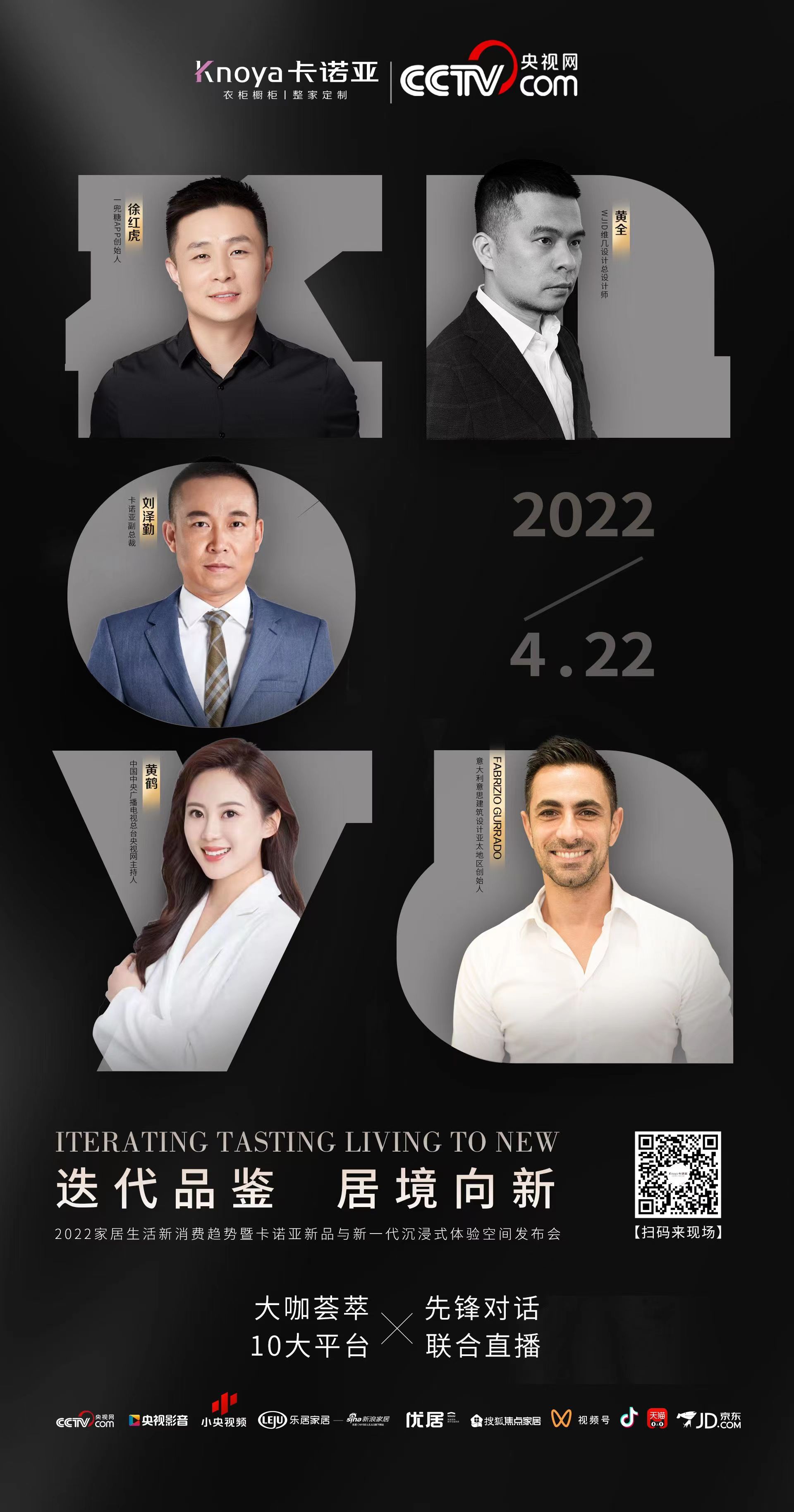 4月22日,“迭代品鑒,居境向新“2022家居生活新消費(fèi)趨勢(shì)暨卡諾亞新品與新一代沉浸式體驗(yàn)空間發(fā)布會(huì),在北京CCTV央視網(wǎng)演播廳圓滿舉行??ㄖZ亞副總裁劉澤勤,央視網(wǎng)產(chǎn)業(yè)發(fā)展事業(yè)群總經(jīng)理宋維君,央視網(wǎng)主持人黃鶴,一兜糖APP創(chuàng)始人徐紅虎,意?利意思建筑設(shè)計(jì)亞太地區(qū)創(chuàng)始人Fabrizio Gurrado、WJID維幾設(shè)計(jì)總設(shè)計(jì)師黃全,通過(guò)MR云直播方式相聚北京,共同見(jiàn)證盛會(huì)。此次發(fā)布會(huì),卡諾亞攜手國(guó)家級(jí)CCTV央視網(wǎng),首開(kāi)定制行業(yè)先河,借助權(quán)威官媒優(yōu)勢(shì),賦能卡諾亞品牌價(jià)值,極大提升其品牌形象。