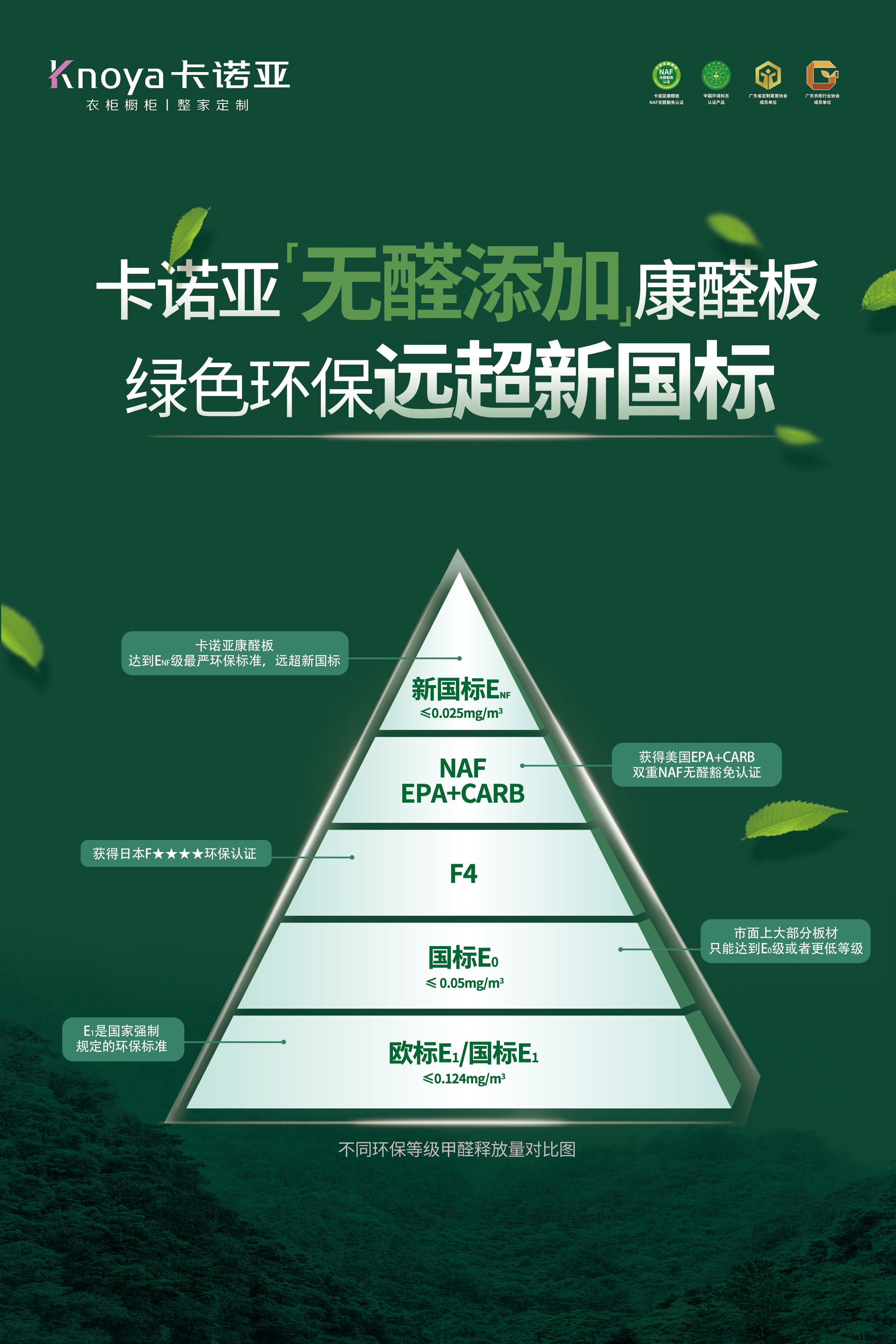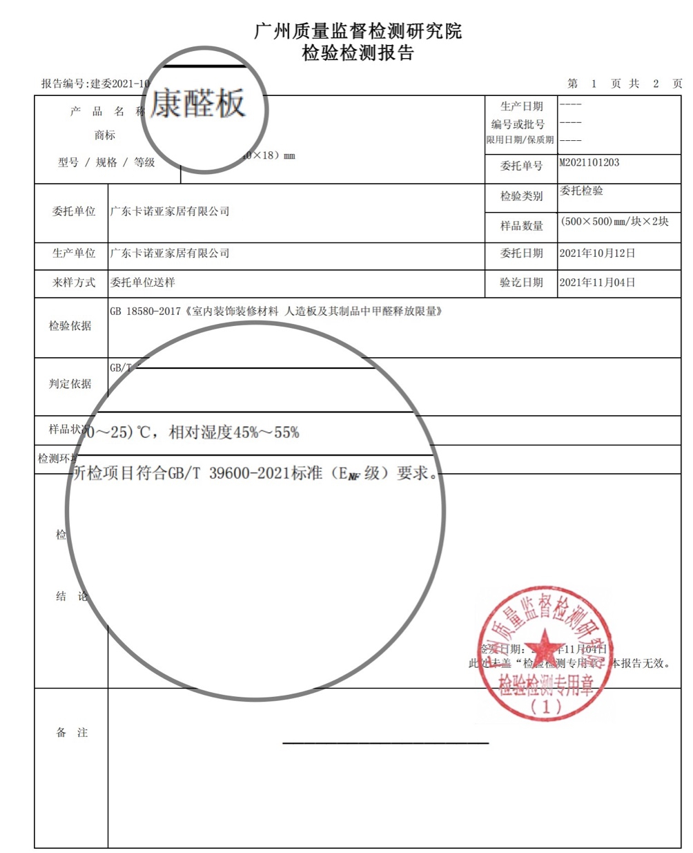 2021年10月1日實施新國標(biāo),將企業(yè)室內(nèi)用人造板及其制品的甲醛釋放量分為三個標(biāo)準(zhǔn),E1級甲醛釋放量為≤0.124mg/m³,E0級為≤0.050mg/m³,最嚴(yán)苛的ENF級為≤0.025mg/m³,國家對人造板環(huán)保品質(zhì)提出了更高要求??ㄖZ亞推出的康醛板,經(jīng)權(quán)威部門檢測,甲醛釋放量≤0.025mg/m³,達(dá)到了全球最嚴(yán)格的ENF級環(huán)保標(biāo)準(zhǔn)。