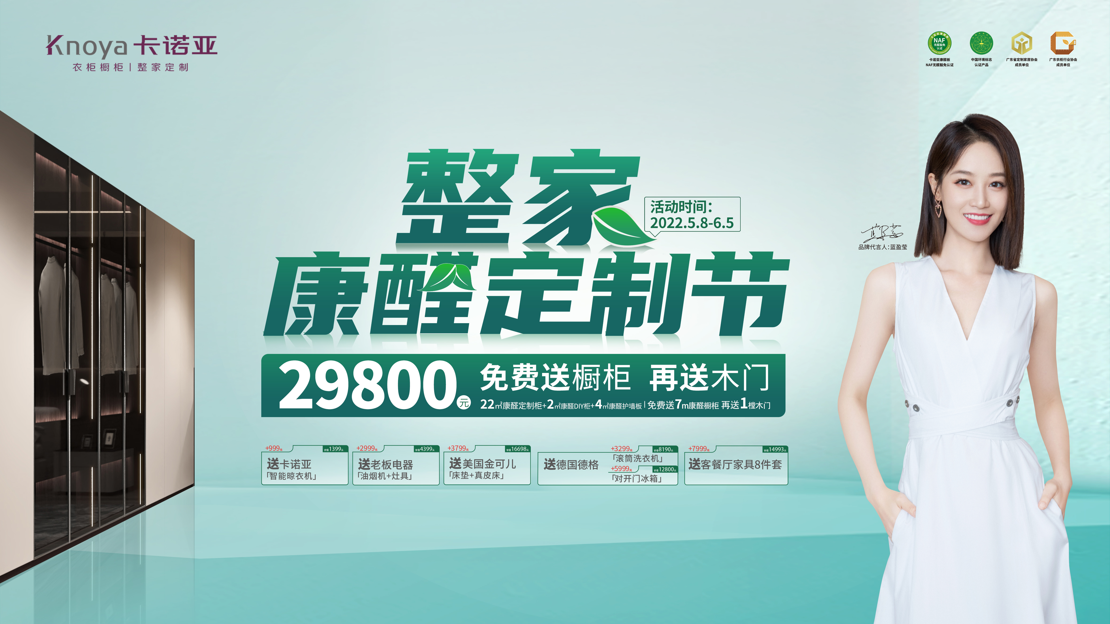 2022年5月8日-6月5日,卡諾亞在全國實力開展“整家康醛定制節(jié)”大型營銷活動,重磅推出新一輪環(huán)保硬核升級政策,整家康醛套餐¥29800包括22㎡康醛定制柜+2㎡康醛DIY柜+4㎡康醛護(hù)墻板,同時還免費送7m康醛櫥柜再送1樘木門,更有勁爆新品嘗鮮價、國際大牌家具家品、家電惠送等海量加碼福利,助力消費者輕松享受綠色家居。
